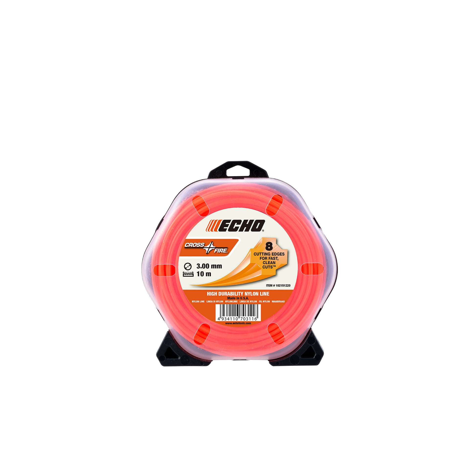 ECHO's best selling professional grade trimmer line features a unique design that offers 8 cutting edges to deliver optimal cutting surface. Dense weeds, brush and hard surfaces are no match for Cross-Fire's strength and durability. Cross-Fire is ideal for professional landscapers and homeowners alike who are looking for an aggressive cut and high-performance durability.